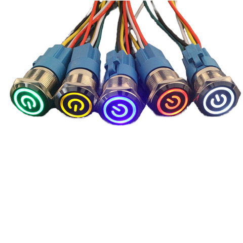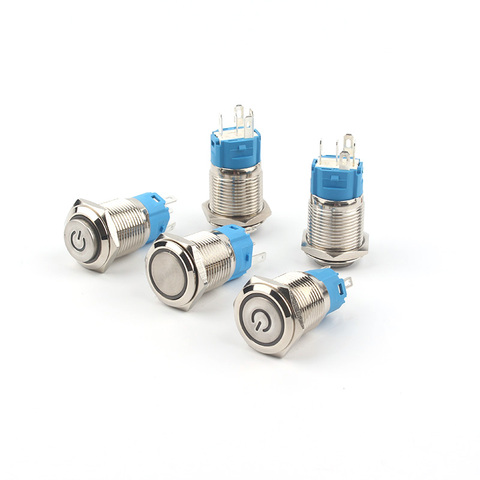 Interruptor de botão autotravamento, caixa prateada de 16mm 5a 12v com luz led